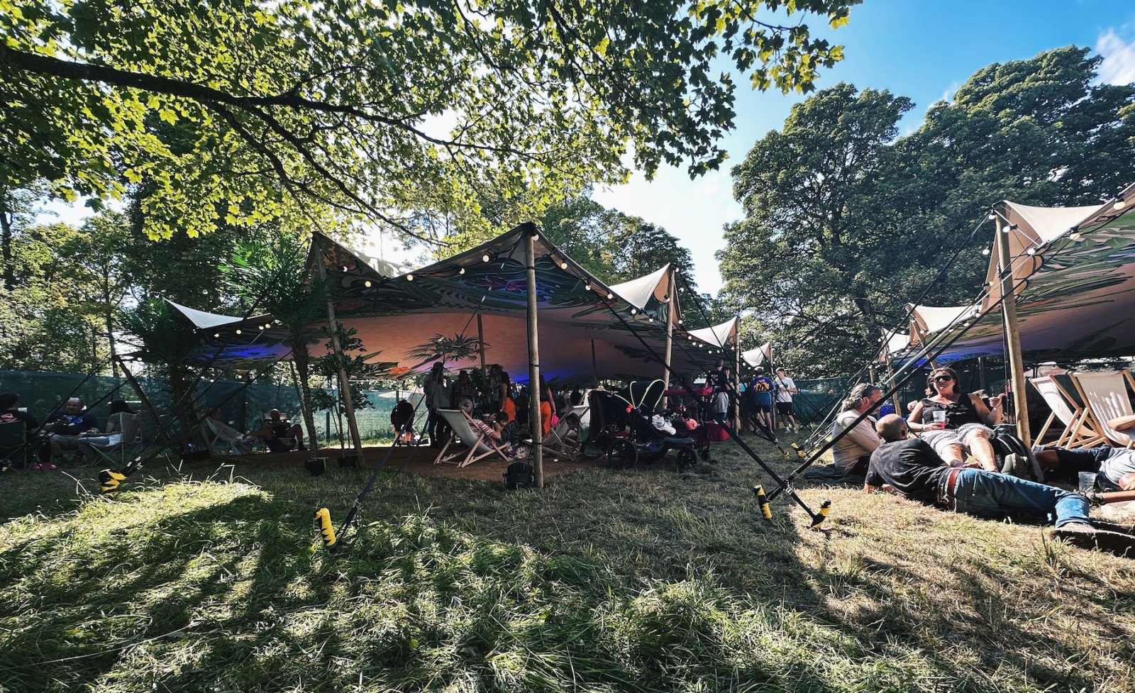 Our stretch tents provided some much needed cover from the elements, and we threw in our fancy new tent linings too. They looked insane, if we do say so ourselves.
